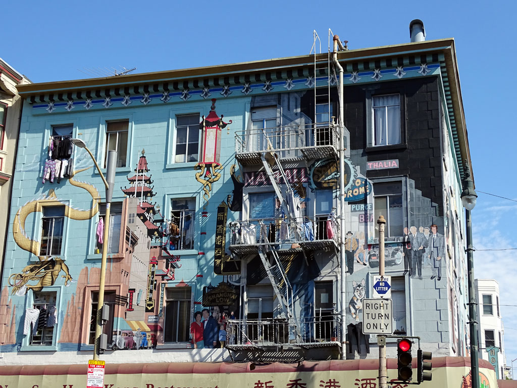 Deux jours à San Francisco, c’est un peu court, alors nous avons ciblé nos visites. Ce matin, direction Chinatown, à quelques blocs de l’Hôtel. Nous remontons Grant Avenue en direction de Washington Square. Bien que situé plutôt en quartier italien que chinois, de nombreux asiatiques s’adonnent au Taï-chi dans ce petit parc. L’aire de jeux voisine aura la faveur des enfants.