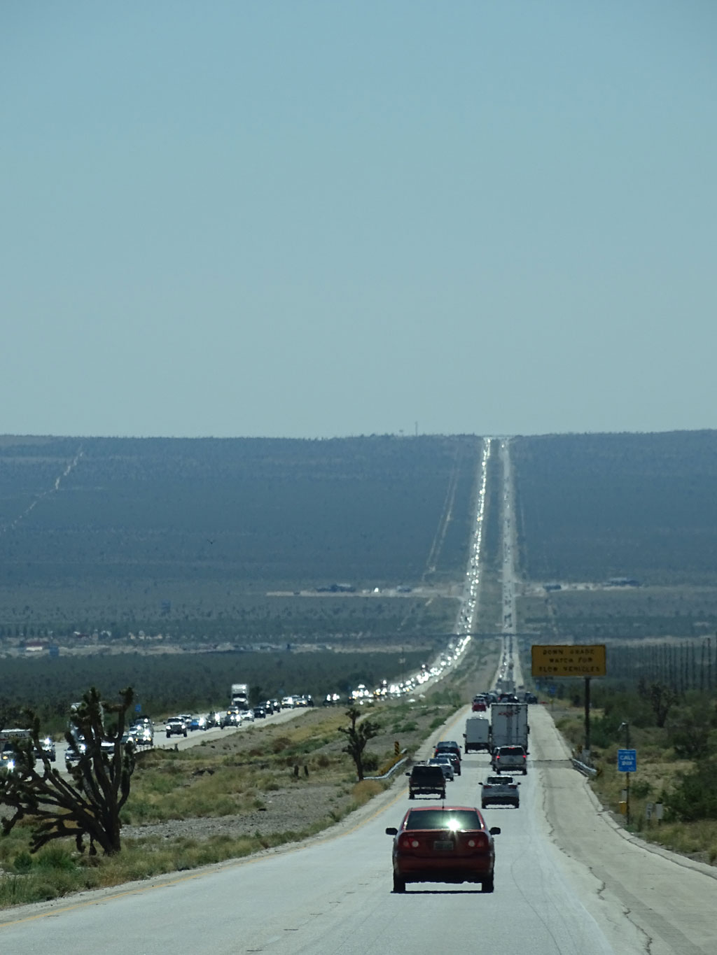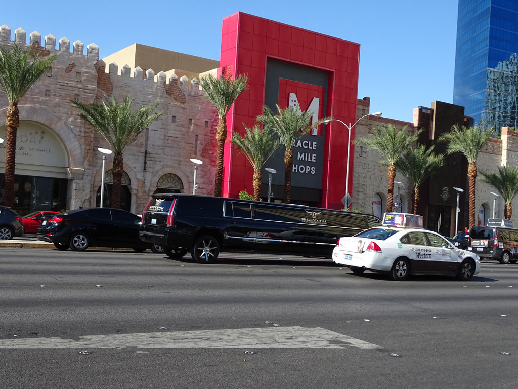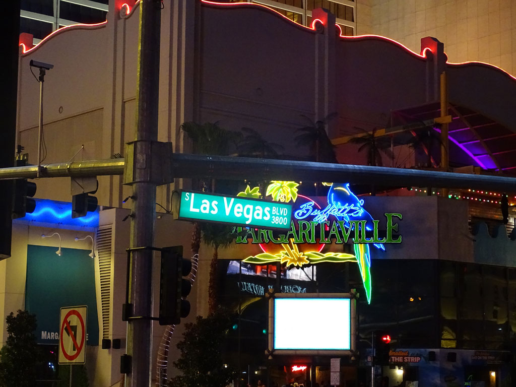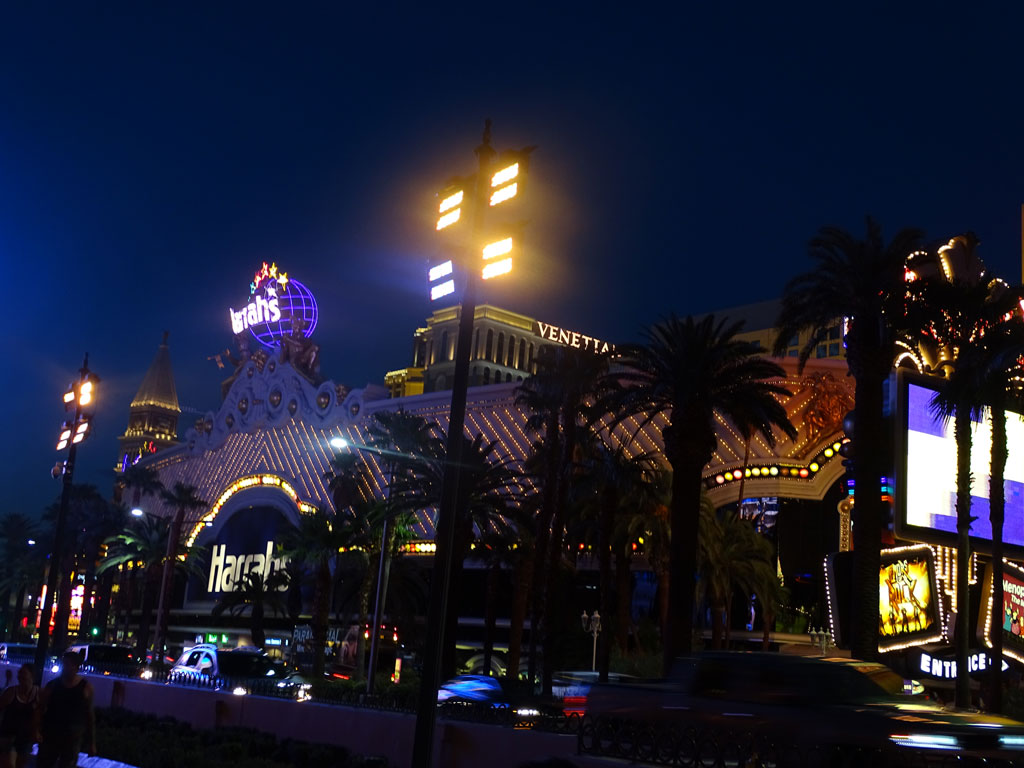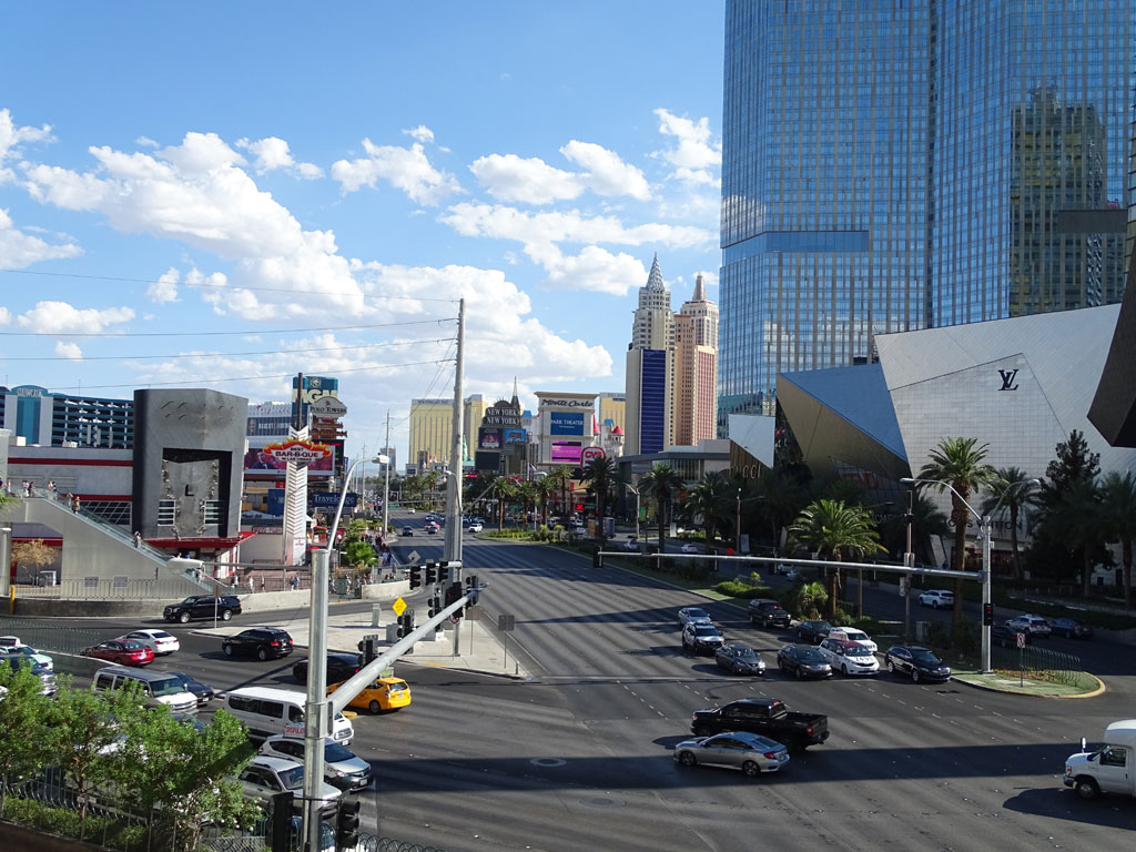 Trois heures de route et quelques 20 degrés supplémentaires, la ville de Las Vegas commence à se dessiner au milieu du désert… Et nous voici sur le Strip de Las Vegas avec notre camion (dénomination du camping-car pour Léane)… Même pas peur !