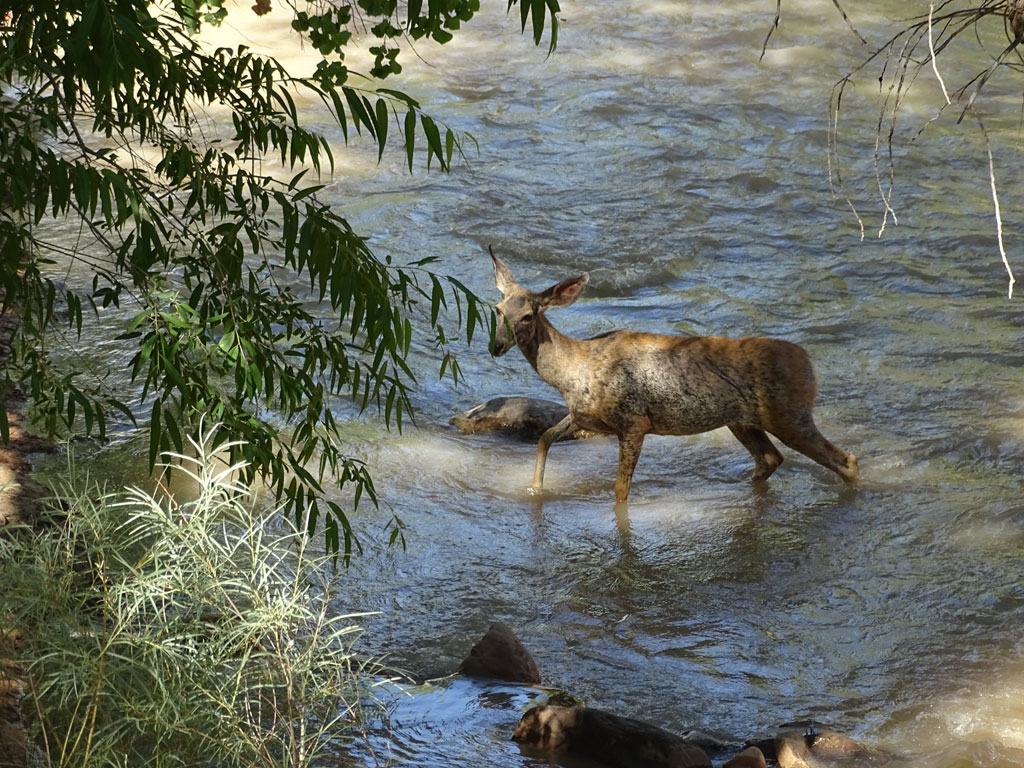 Histoire de marcher un peu avant de quitter le site, nous prenons un chemin le long de la rivière où nous rencontrons plus de biches et d’écureuils que de touristes… Un plaisir !
