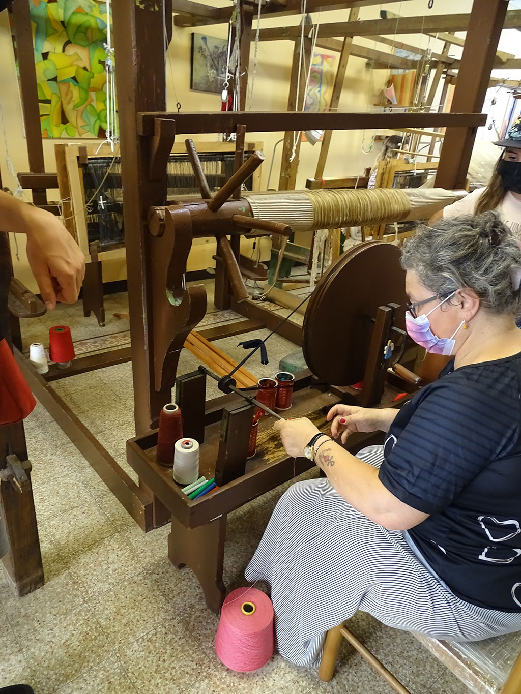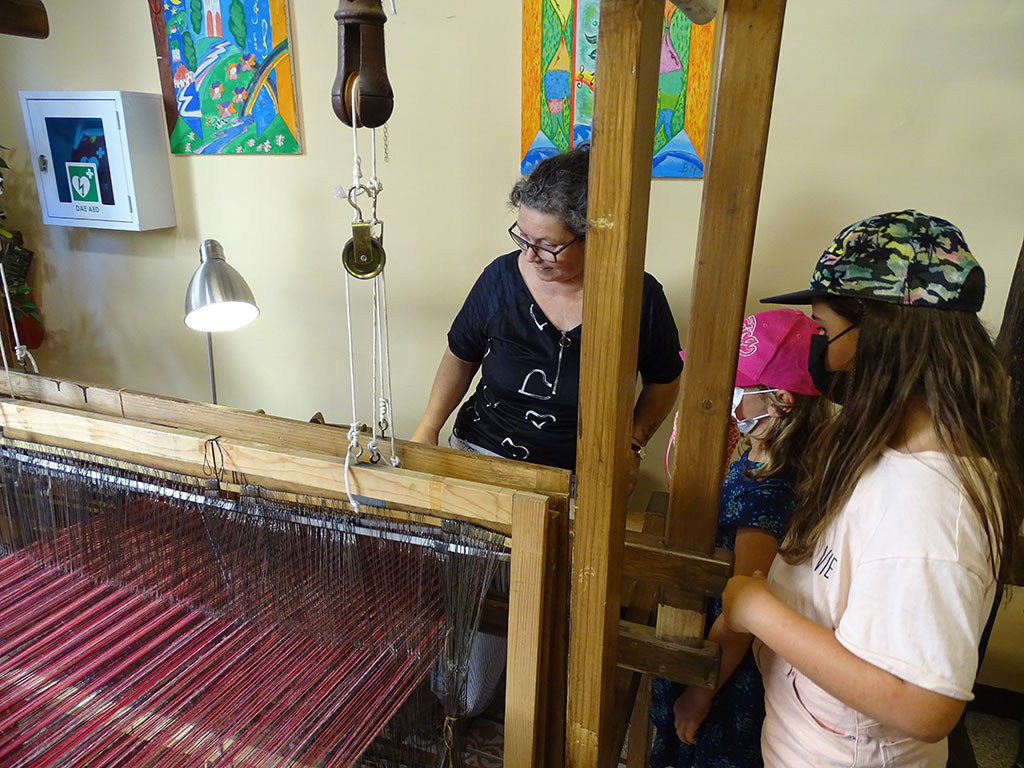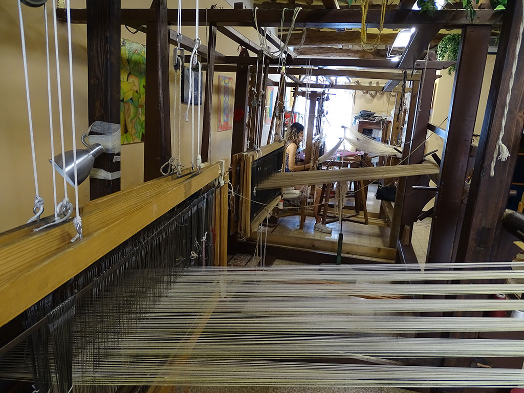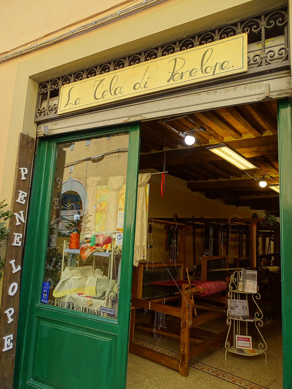 Après une matinée piscine et… piscine, nous partons découvrir la petite ville de Lucca à une trentaine de minutes de notre maison. Petit bijou fortifié, cette ville surprend dès l’arrivée par ses imposants remparts. A l’intérieur, une multitude de petites ruelles – malheureusement pas toutes piétonnes – invitent à la promenade. Tantôt très calmes tantôt très animées et très commerçantes, on y croise autant de locaux sur des vélos que de touristes en balade. La grande piazza dell’Anfiteatro surprend par sa forme et enchante par les façades de ses maisons. Plus loin, au détour d’une rue, nous découvrons une petite échoppe de tissus où les métiers à tisser étaient en activité (La Tela Di Penelope), avec explications en français par la propriétaire très accueillante.