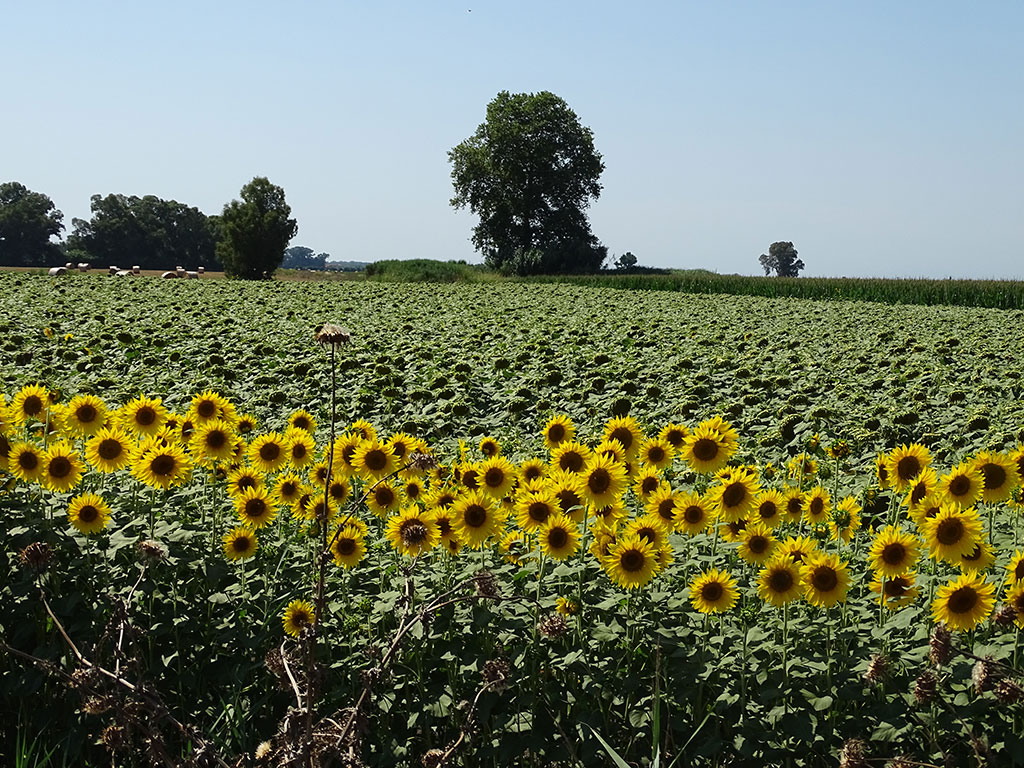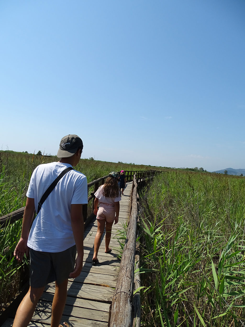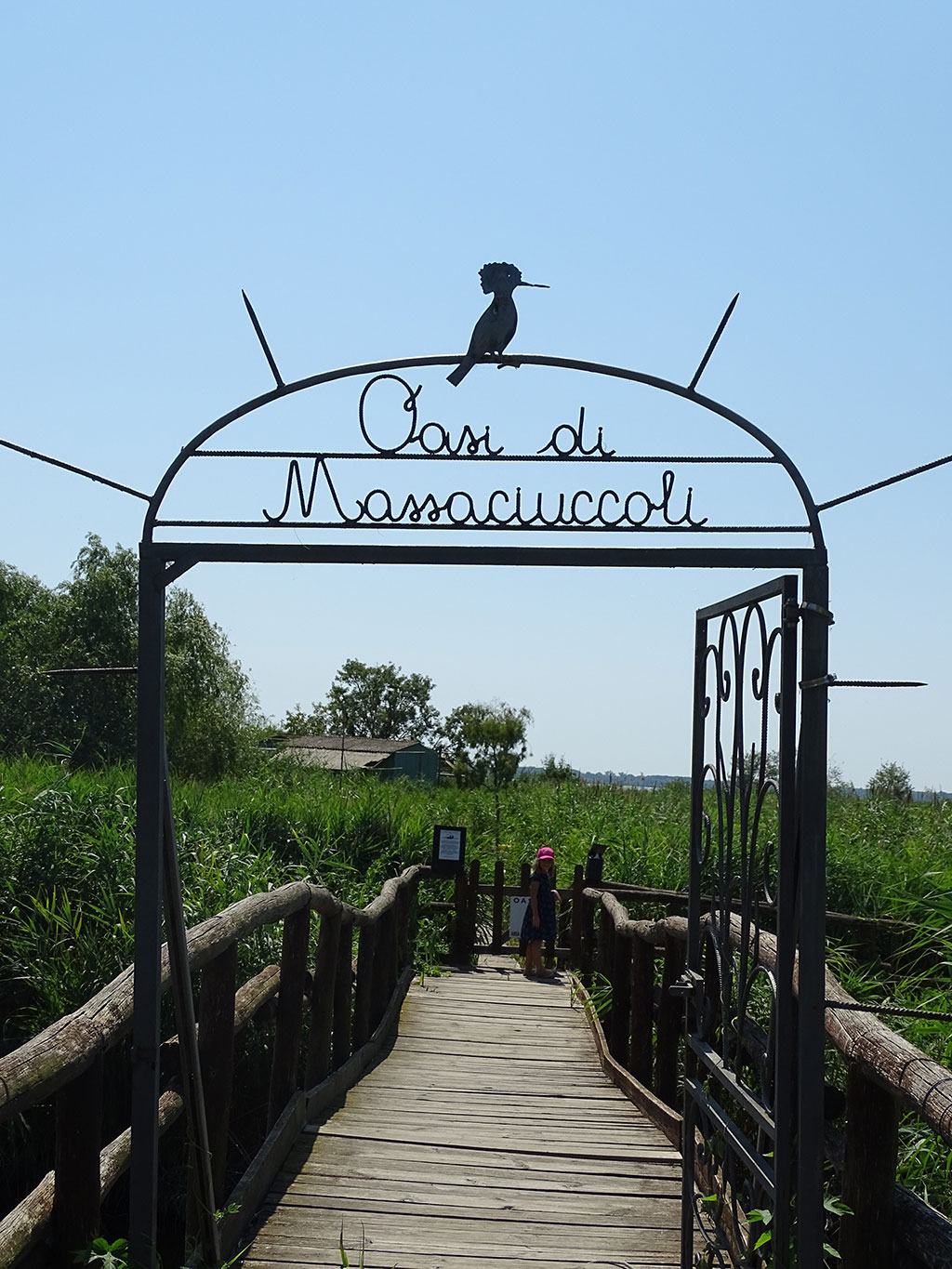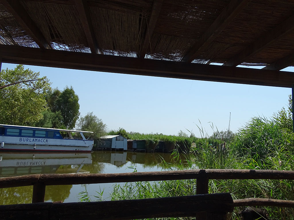 Nous quittons Lucca par les contreforts du massif des Alpi Apuane qui se dévoilent au fond des champs de tournesols encore un peu fleuris, pour rejoindre le lac de Massaciuccoli où nous espérons pique-niquer. Faute de trouver d’endroit adéquate et ombragé, nous suivons le GPS vers un parking en bordure de réserve naturelle. Nous arrivons alors dans l’endroit parfait, point de départ d’une balade pour observer les oiseaux, avec une petite table ombragée près des cabanes de pêcheurs. Si les oiseaux semblent avoir fui les grosses chaleurs de ce plein été, nous profitons néanmoins d’une belle pause dans ce petit coin enchanteur.