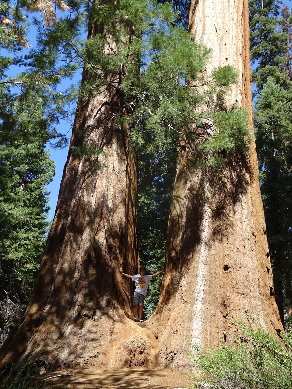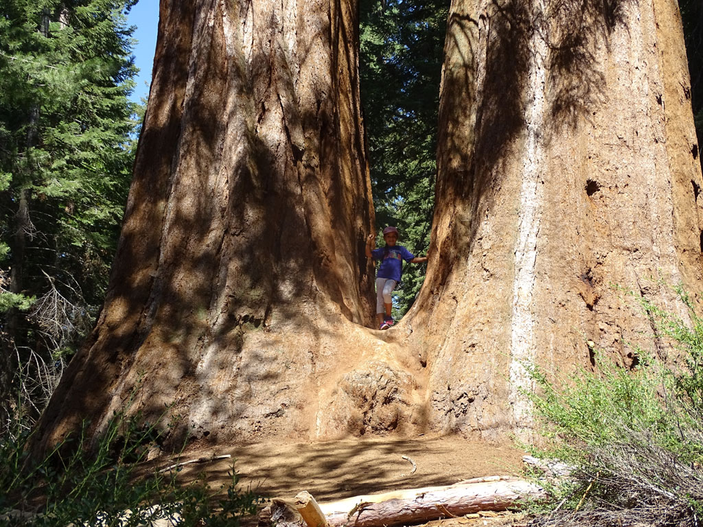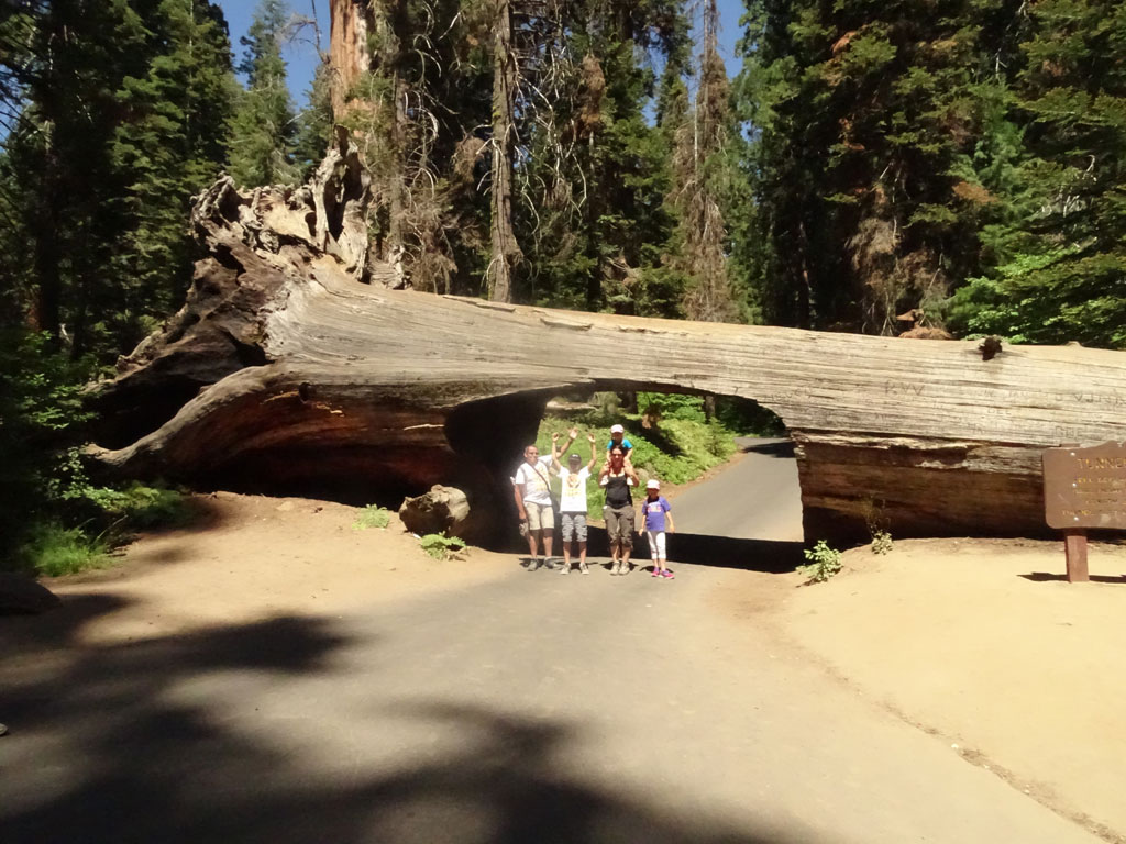 La visite de Sequoia Park avec un camping-car n’est pas pratique, même impossible par endroit. En effet, le seul accès possible pour les véhicules de plus de 7 mètres (22′) (nous en faisons 9 soit 30′), c’est par le nord. Loupé, notre camping est situé à l’accès sud. Enfin pas si loupé que ça car nous avons pu prendre une navette qui nous a emmené, moyennant quand même 15 $ par personne, au cœur du parc. Après une heure d’une route de montagne où l’on comprend très vite pourquoi les camping-cars sont interdits (j’ai fermé les yeux et serré les… un bon nombre de fois), nous voilà au cœur de la forêt des géants. Des arbres faisant jusqu’à 30 mètres de circonférence et 80 mètres de haut nous entourent. Les yeux en l’air mais les pieds bien sur terre, nous arpentons les sentiers du parc, en naviguant en navette (gratuite cette fois) d’un point à l’autre.