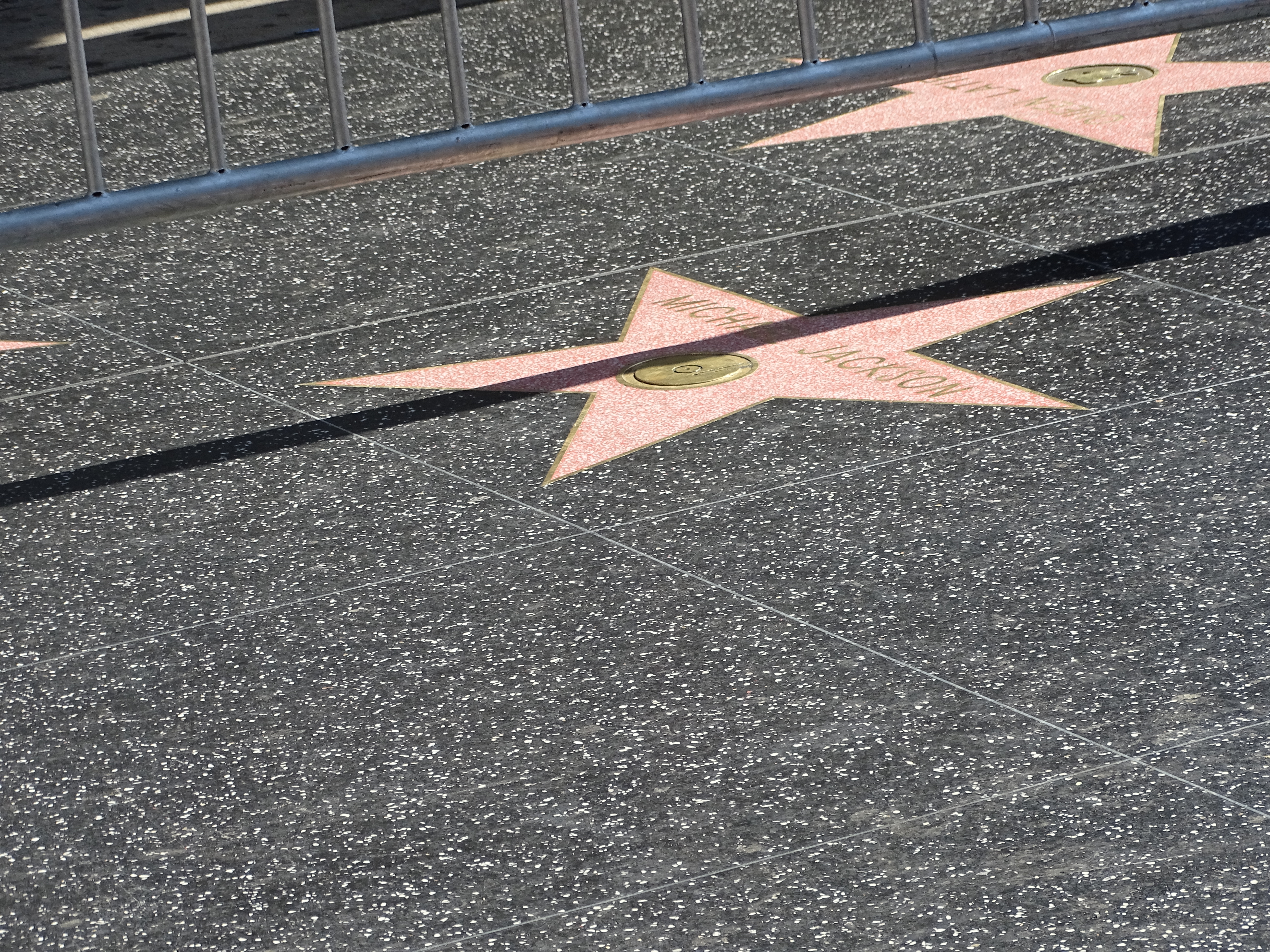Nous cherchions il est vrai particulièrement une étoile : Michael Jackson. Pas de chance, elle est située juste devant le Chinese theater où tout était bouclé pour une avant-première. Vue donc, mais pas touchée !