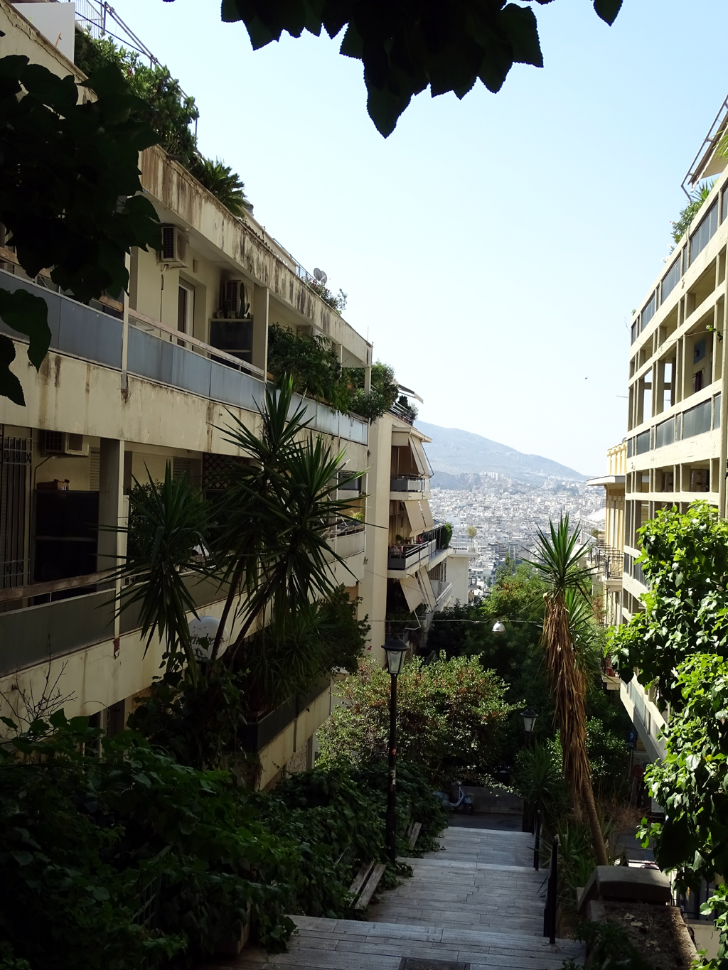 À l’ombre des pins et des orangers, la grimpette jusqu’au pied de la montagne est très agréable, malgré la chaleur. Pour le reste, nous optons pour une montée en funiculaire qui, pour 5€ l’aller par personne, vous emmène directement au sommet depuis l’angle des rues Aristippou et Ploutarchou.