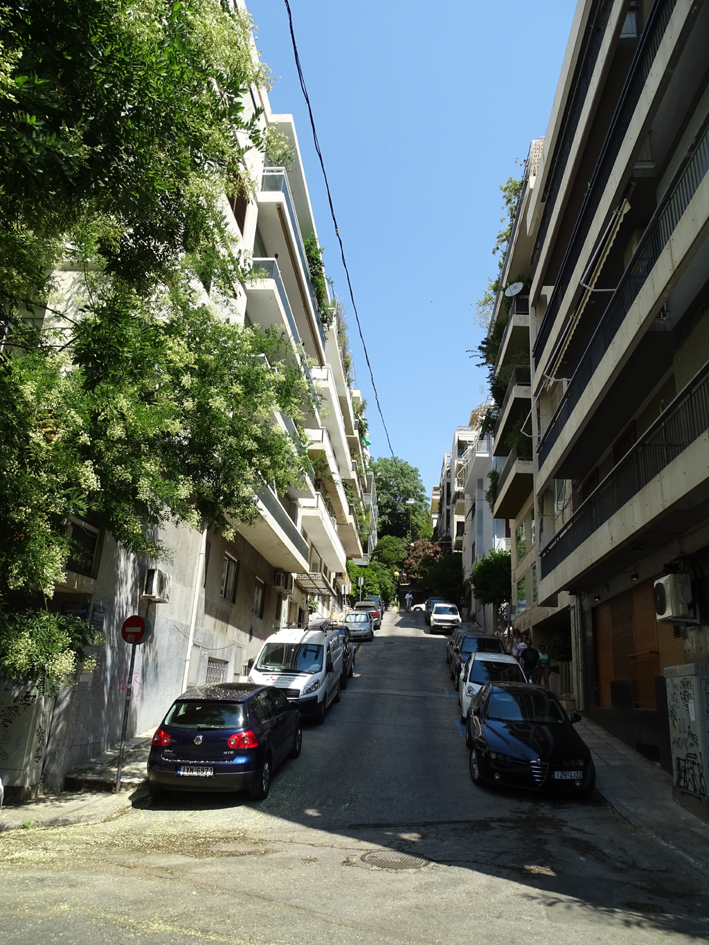 Alors que la météo affiche facilement quelques degrés de plus qu’hier à la même heure, le vent en moins, nous partons à l’ascension du Mont Lycabette (Lycabettus Hill), haut de 278 mètres. Pour y accéder, nous commençons par emprunter les ruelles pentues qui rappellent de suite aux enfants celles de San Franscico arpentées il y a trois ans.