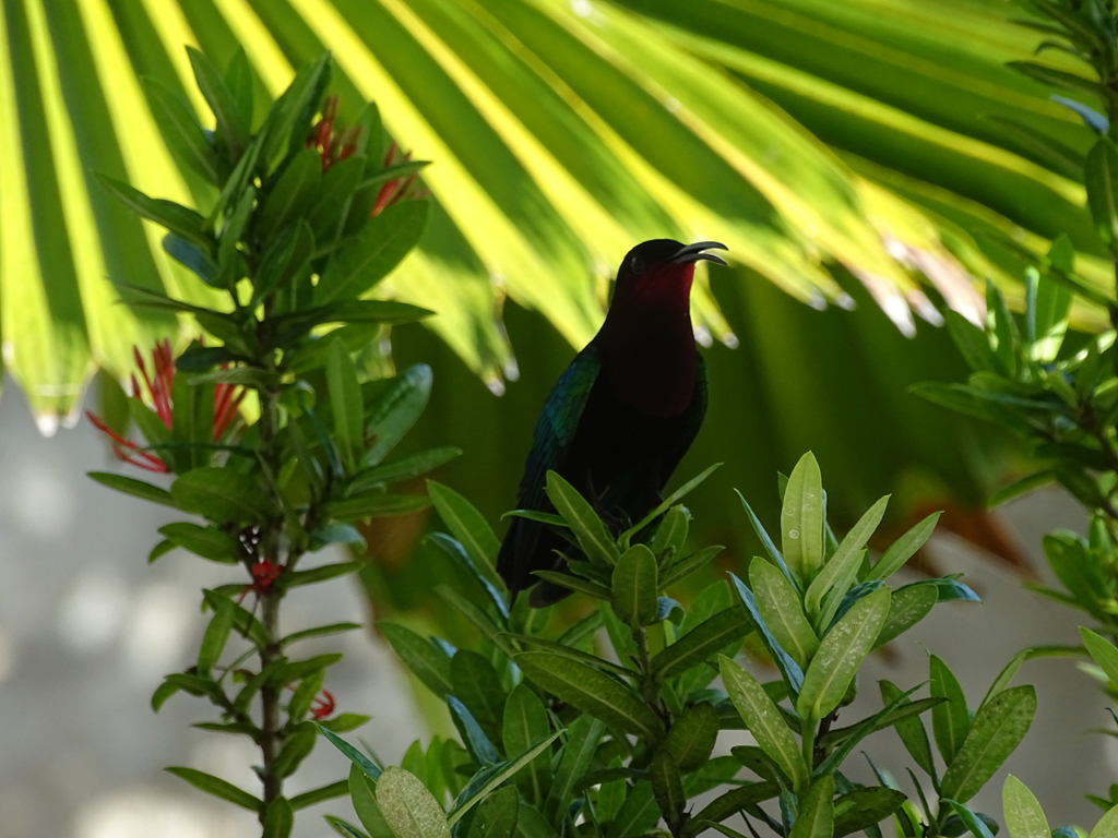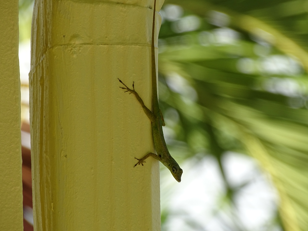 – Par le vendeur de fruits en bord de route qui nous a fait le tarif « piège à touristes » … mauvais esprit, que nous n’avions pas rencontré chez les cousins de Guadeloupe ;(