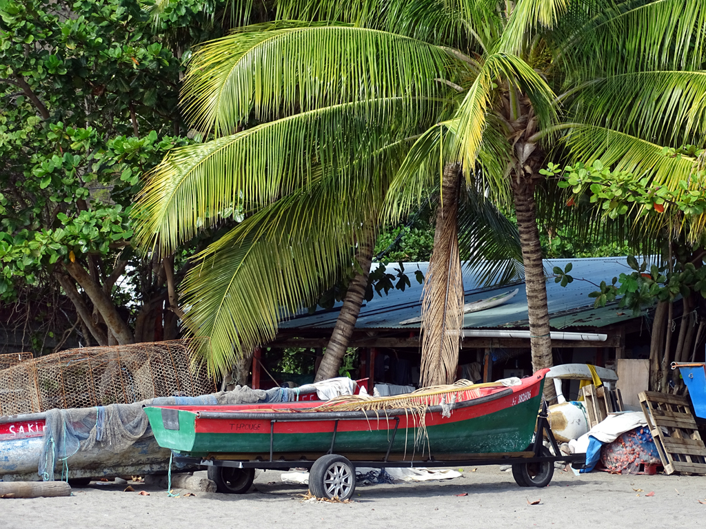 Nous reprenons la route vers le sud, longeant de magnifiques plages de sable noir bordées de cocotiers. Nous optons pour la plage du coin (c’est bien son nom !), au Carbet, autre village de pêcheur très agréable, fait de petites baraques colorées en bord de mer. Voici donc notre Martinique coup de cœur !