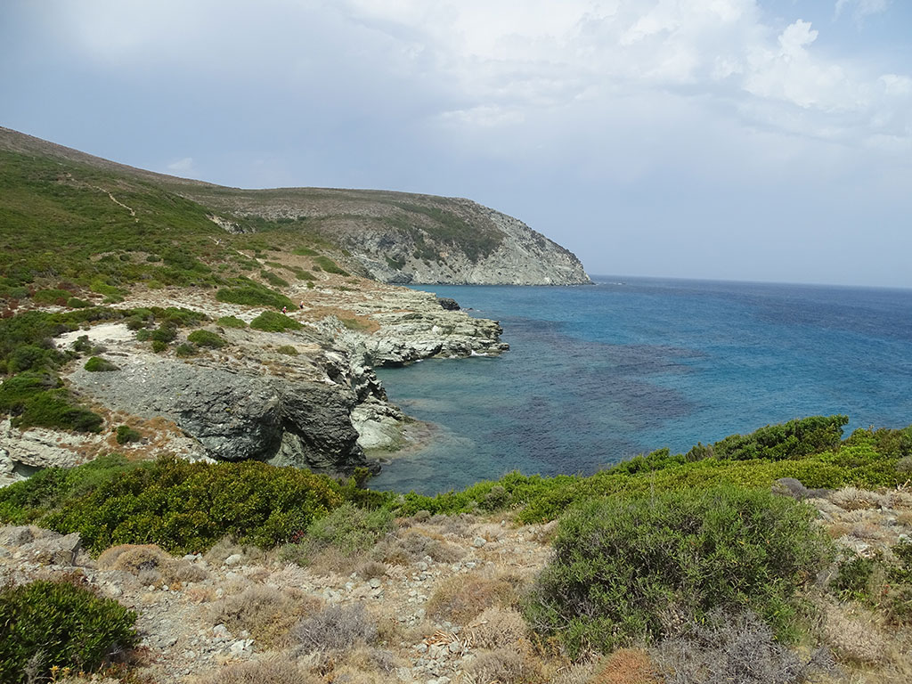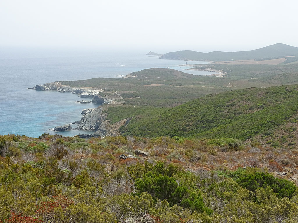 Nous voilà partis peu après 9h00 de la plage de Macinaggio, par le sentier des douaniers, très bien balisé et plutôt facile à marcher. Dès les premiers kilomètres, les paysages sont époustouflants. Nous avons de la chance côté météo avec un ciel couvert et venteux, de quoi éviter le coup de chaud sur ce parcours quasiment pas ombragé.