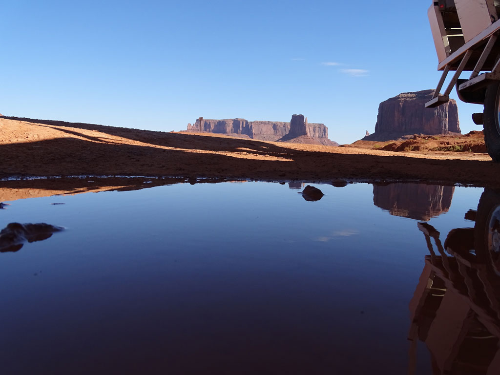 Voulant découvrir de la meilleure façon qui soit les montagnes mythiques de Monument Valley, nous nous étions intéressés au sujet avant de partir, prenant de bons conseils sur les différents blogs voyage. Nous avons donc évité les tours à 12/16 personnes par 4×4 pour préférer un tour particulier pour nous seuls… et pour moins cher ! En effet, en réservant à l’avance, nous avons eu un tarif de 150 $ pour nous 5 alors que les tarifs les moins chers sur place montaient à plus de 200 $.