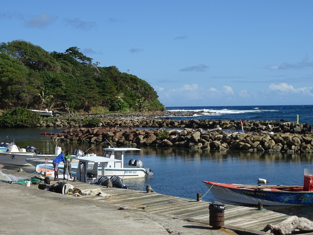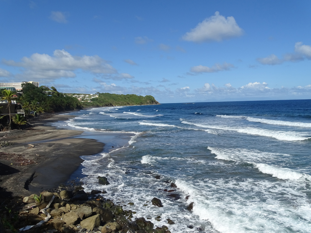 Nous commençons notre journée par la côte dite nord Atlantique. L’océan offre alors de belles vagues et la terre des grandes falaises. Le passage par les villes du Marigot et du Lorrain se fera rapidement à cause d’une forte odeur de sargasse. Dommage car les maisons colorées et fleuries invitaient plutôt à la promenade.