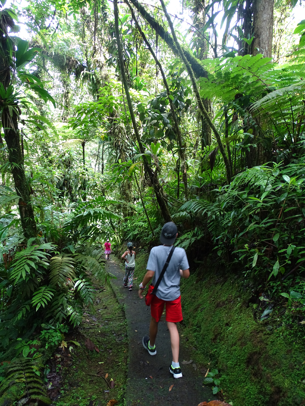 Mis en place par le Parc Naturel régional de Martinique, le domaine d’Emeraude, situé à quelques kilomètres au sud de Morne-Rouge, permet d’allier une balade en forêt tropicale à l’apprentissage de son écosystème. Trois boucles balisées et aménagées – dont la rouge (annoncée en 1 heure, faisable sans problème en 30 minutes) – offrent une belle découverte de la faune et la flore locale. Des tables de pique-nique ombragées en bord de rivière nous permettent de déjeuner avant de repartir vers la mer.