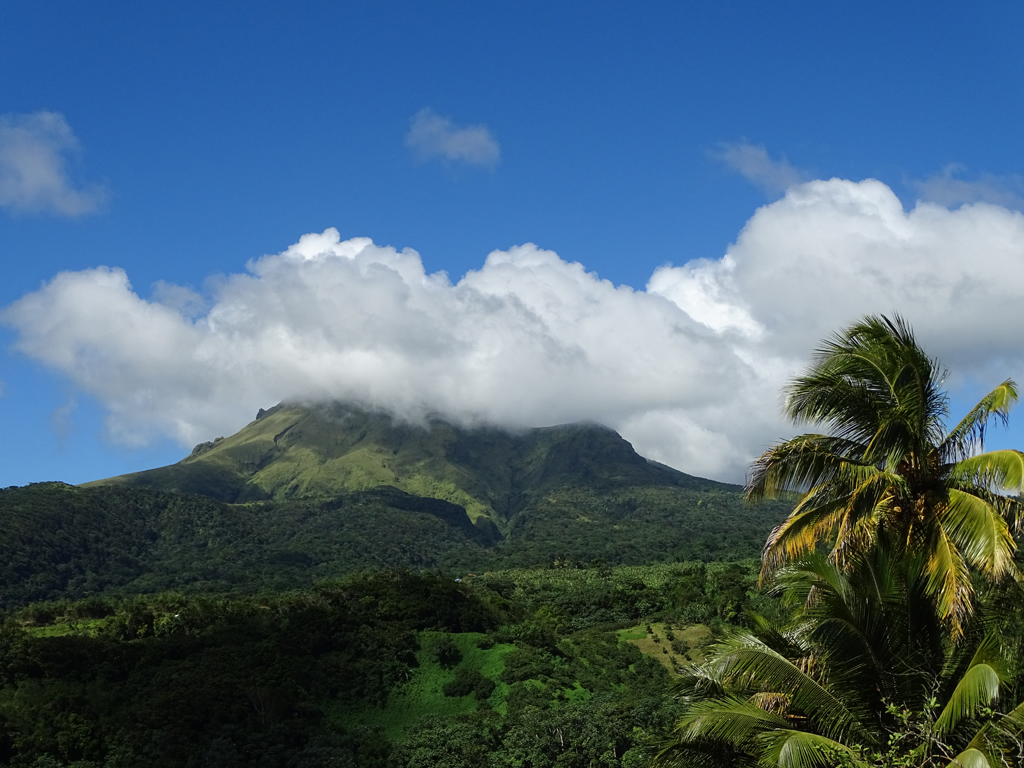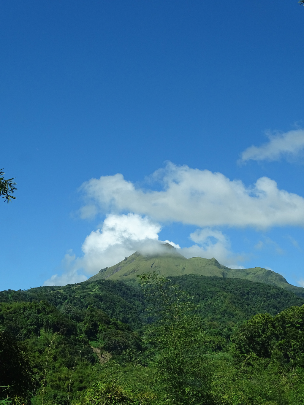 Alors que l’imposante Montagne Pelée embrasse les nuages, nous la contournant pour rejoindre Le Morne-Rouge, très belle ville située sur un plateau d’où l’on peut voir tantôt l’océan tantôt la mer des caraïbes.