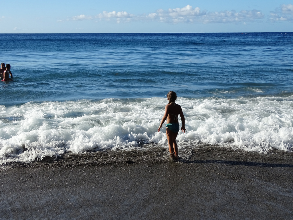 Retour à Saint-Pierre, toujours aussi belle avec en prime la Montagne Pelée sans nuage le temps d’une photo. Nous poursuivons l’unique route vers le nord, traversant le magnifique village du Prêcheur. Une belle ambiance colorée se dégage de ces lieux du bout du monde, où la couleur du sable noir nous rappelle à chaque instant l’imposant volcan qui domine l’île. Si le bout de la route D10 ne présente aucun intérêt si vous ne partez pas pour une randonnée (difficilement circulable, plus de 50 voitures garées à l’arrivée), nous vous conseillons de vous arrêter sur la dernière plage croisée : l’Anse Ceron. Pas trop fréquentée, ombragée et offrant un magnifique spot de snorkeling, cette plage de sable noire vaut à elle seule