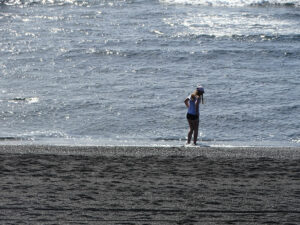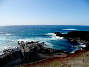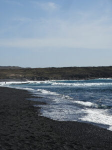 Fin de journée entre les Salines de Janubio et la magnifique plage de sable noir du même nom, où les forts courants n’incitent pas à la baignade.
