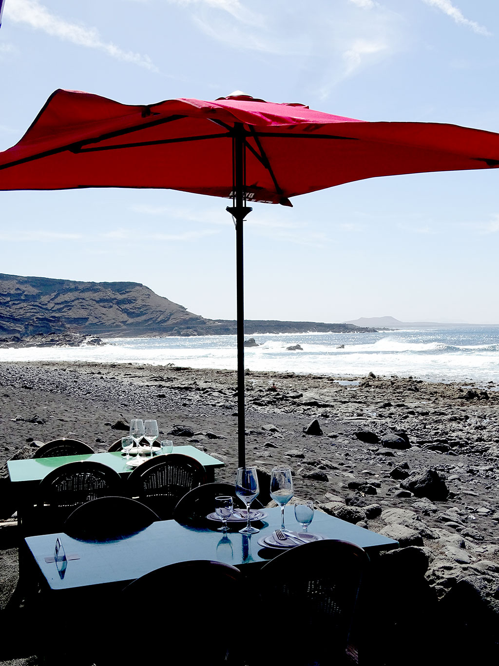 Passée cette expérience mitigée, nous poursuivons jusqu’à El Golfo, village de pêcheurs, devenu plus village de restaurants qui a su néanmoins garder son charme et son authenticité. Déjeuner les pieds dans l’eau autour d’une parillada de poissons grillés.