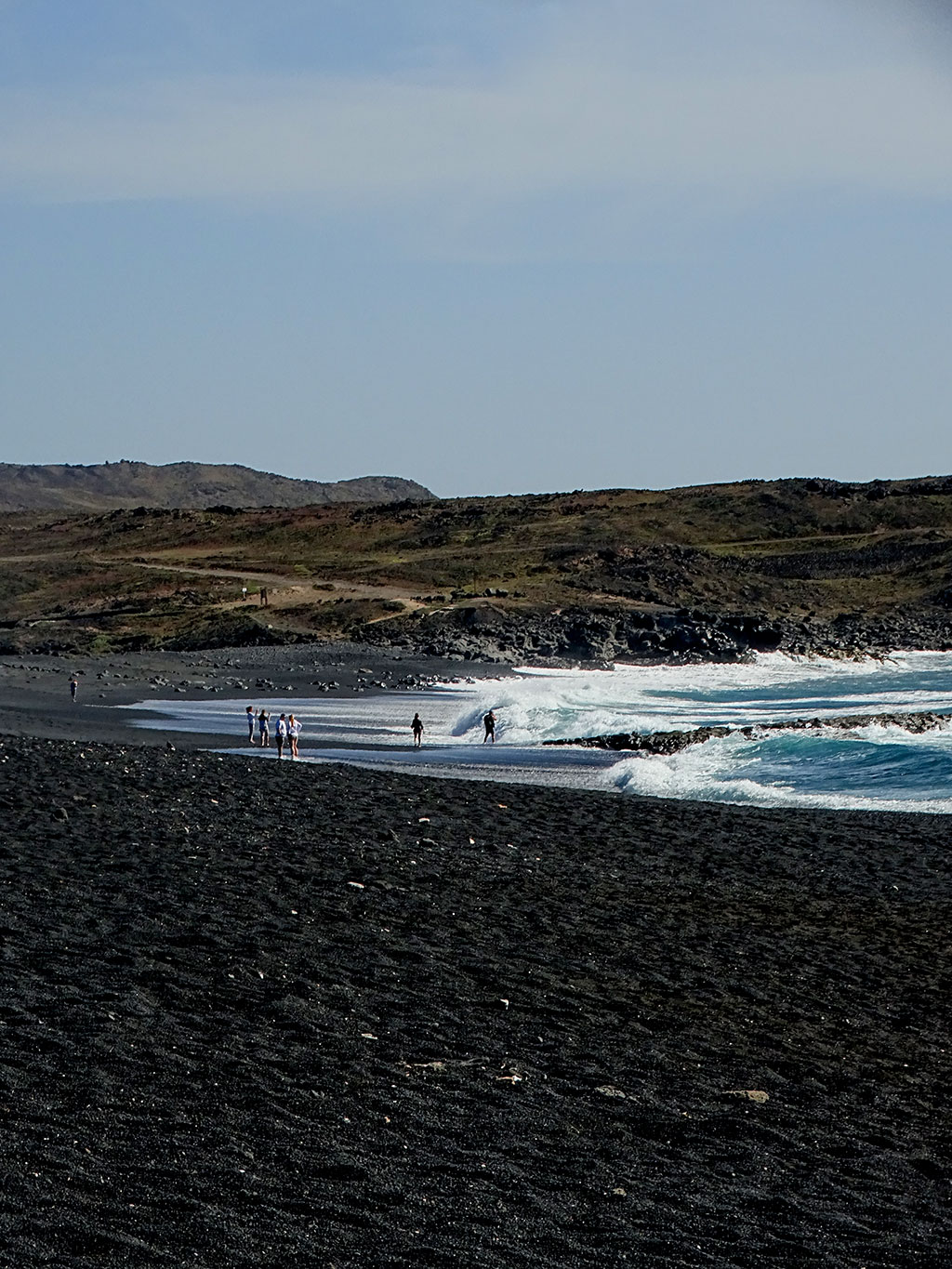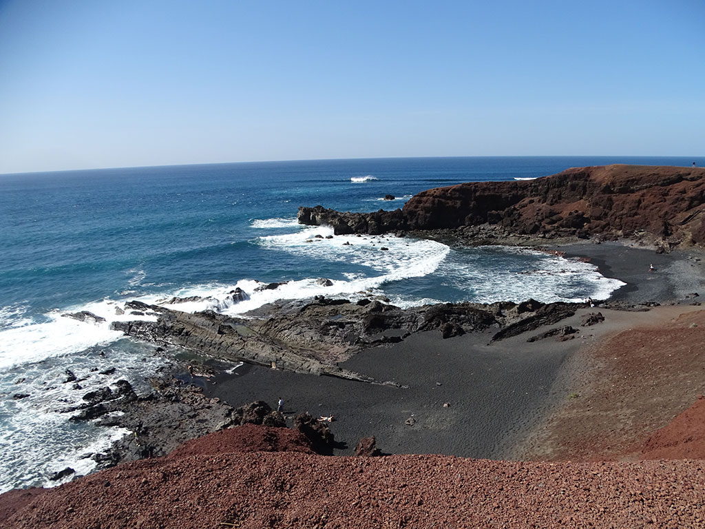 Fin de journée entre les Salines de Janubio et la magnifique plage de sable noir du même nom, où les forts courants n’incitent pas à la baignade.