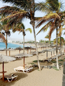 Alors que la météo s’était montrée plutôt calme jusqu’à présent, grosse journée de vent pour ce dernier jour sur Lanzarote. C’était prévu, alors nous avions déjà fait une croix sur le farniente sur le sable. Le seul endroit que l’on n’avait pas encore découvert est peut-être le seul que voient la plupart des touristes : Puerto Del Carmen. Concentrant la grande majorité des hôtels, cette station balnéaire bien plus populaire que Playa Blanca au sud ne nous a pas vraiment séduits. Si ses belles plages de sable fin auraient pu nous faire de l’œil, le front de mer rempli de centaines de boutiques de souvenirs bas de gamme et de restaurants asiatiques, mexicains ou irlandais n’est franchement pas à notre goût. Visite en coup de vent donc !