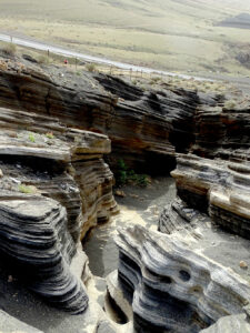 Le site n’est pas référencé officiellement ni dans les guides ni indiqué, mais est un peu victime de son succès sur les réseaux. Il gagnerait je pense à être aménagé un minimum pour éviter le piétinement des visiteurs qui, pour beaucoup, se trompent de chemin et marchent un peu partout à la recherche les failles, ces dernières n’étant ni visibles de la route ni du parking.