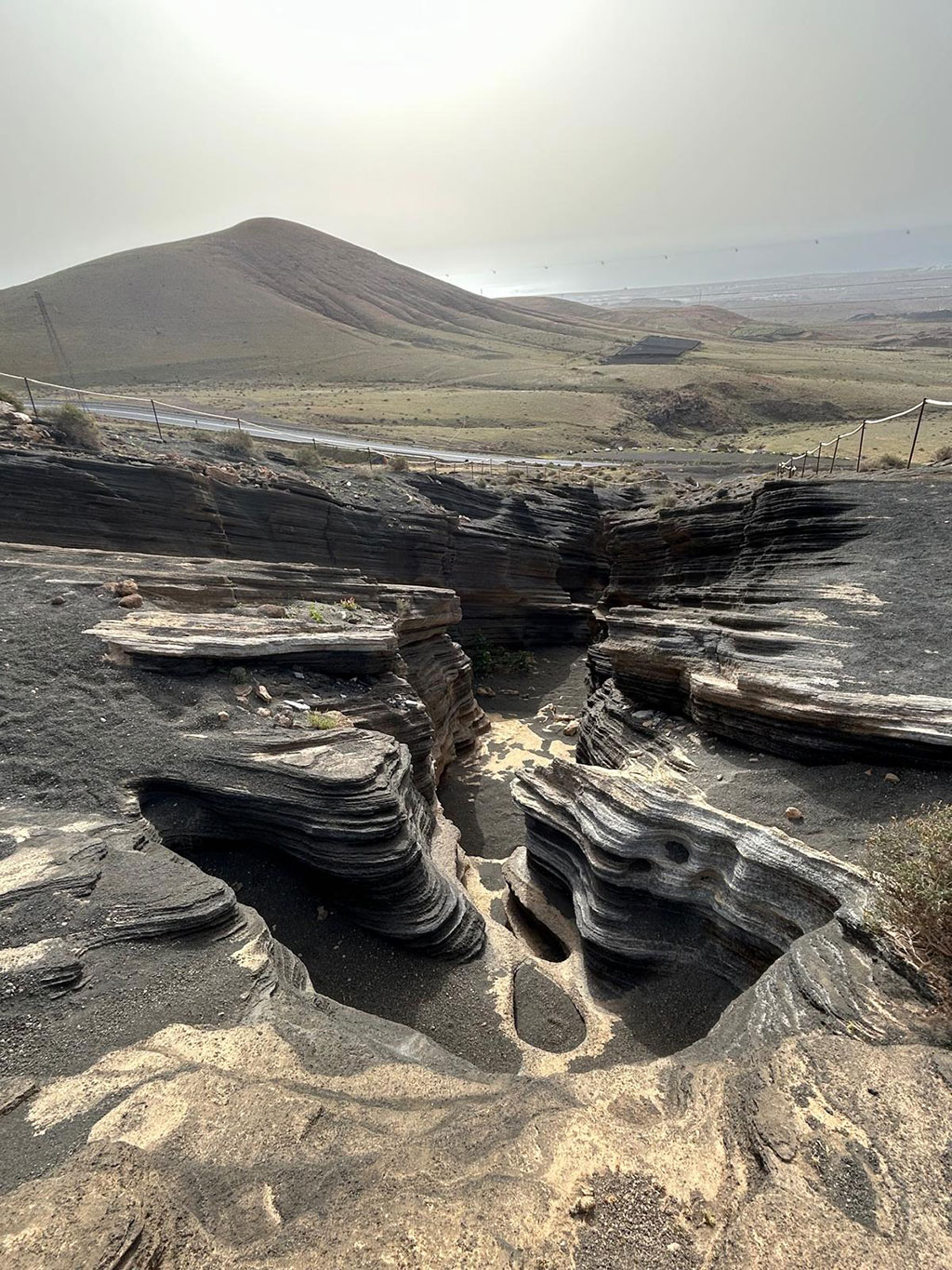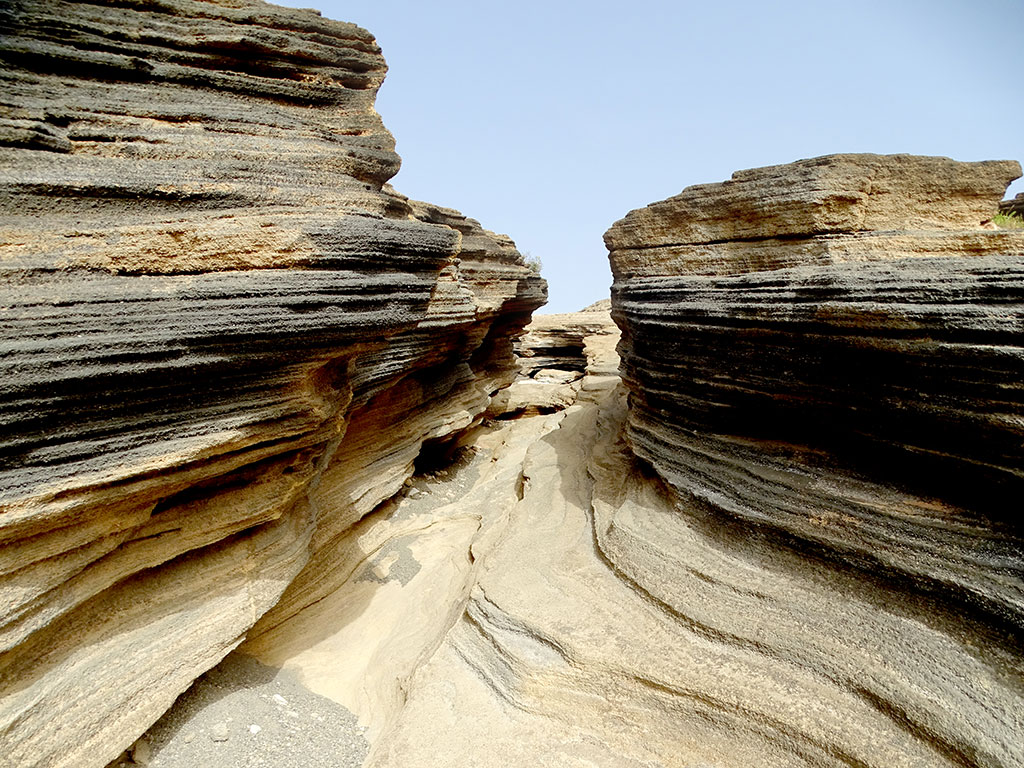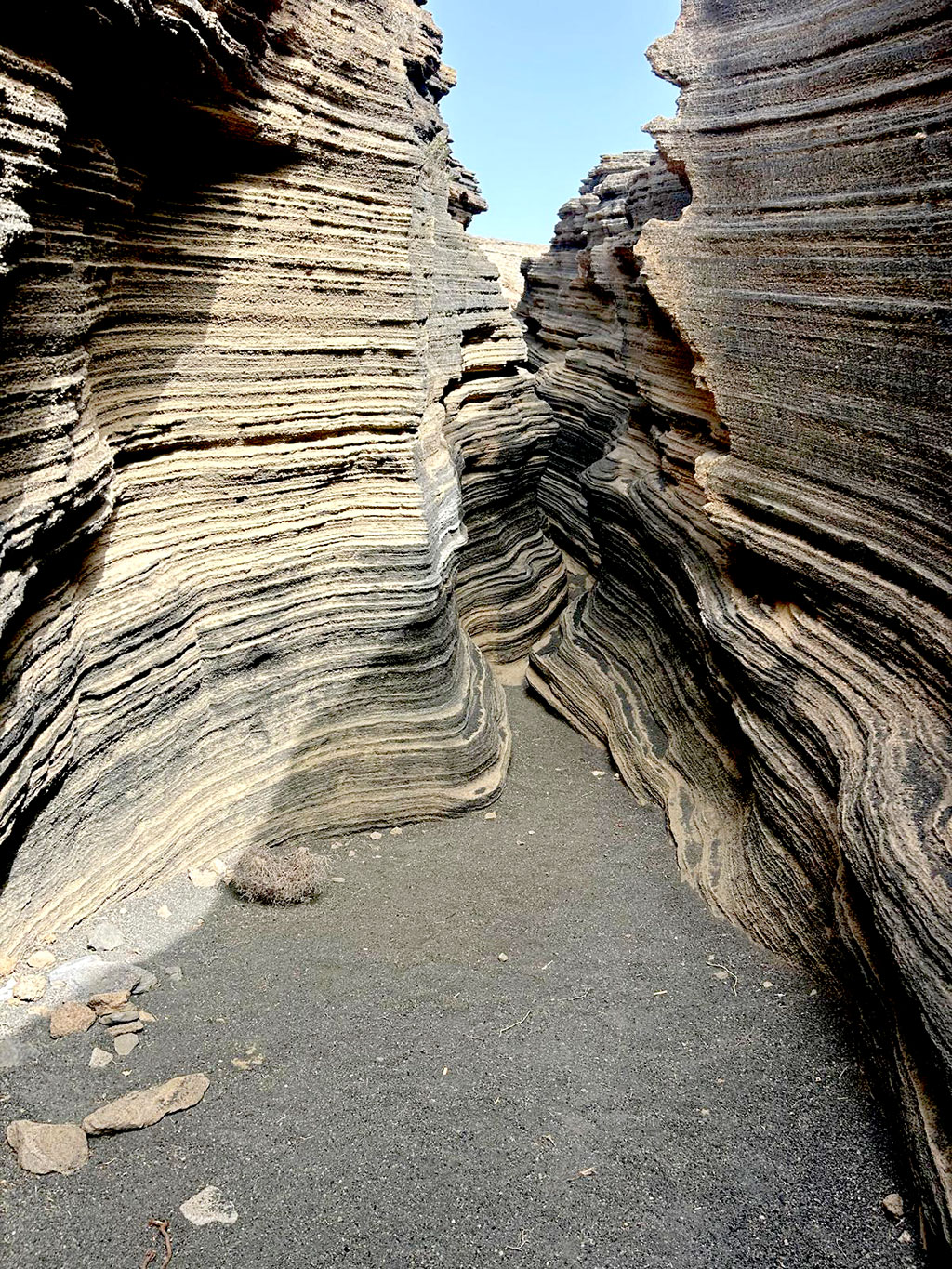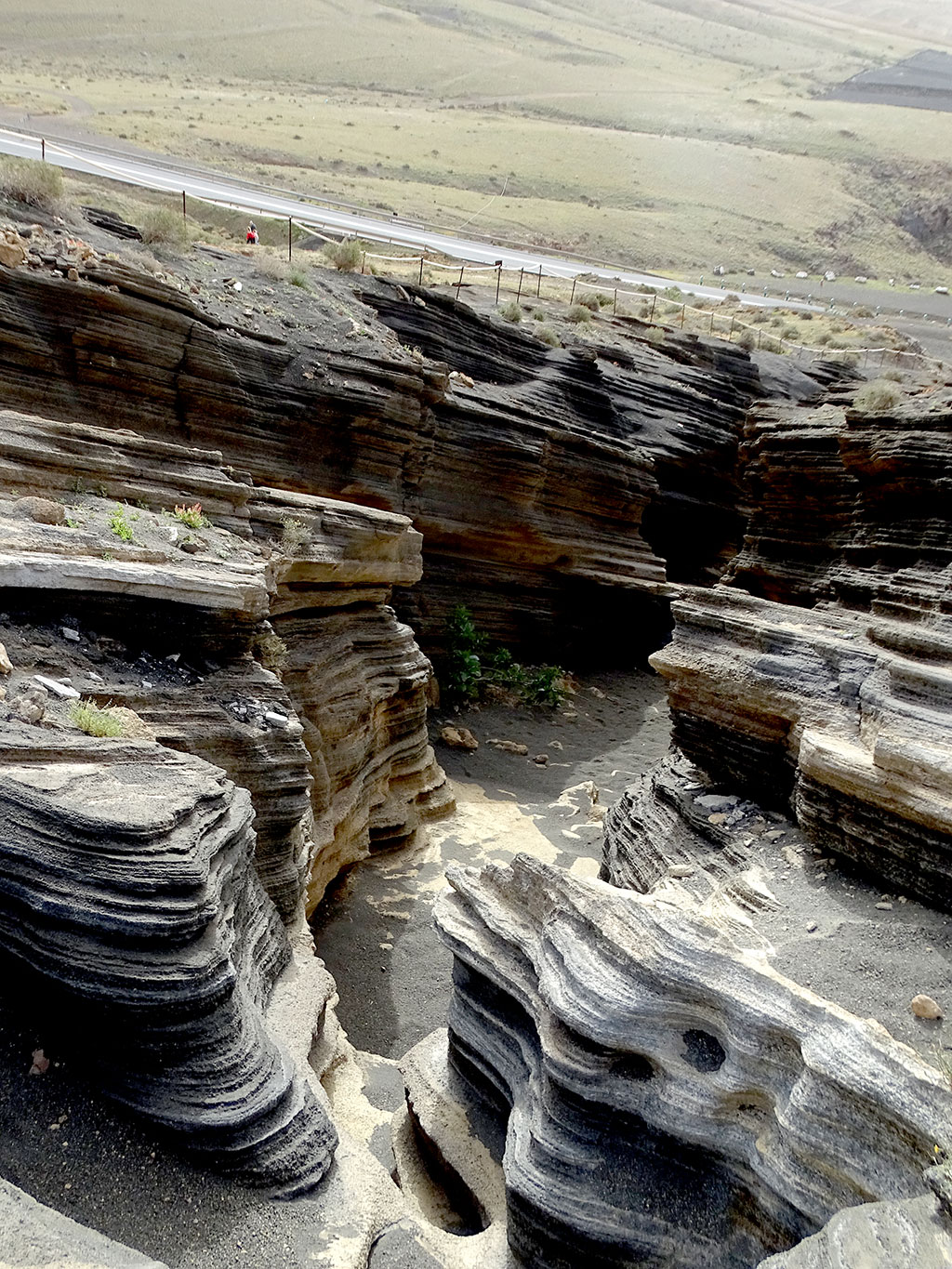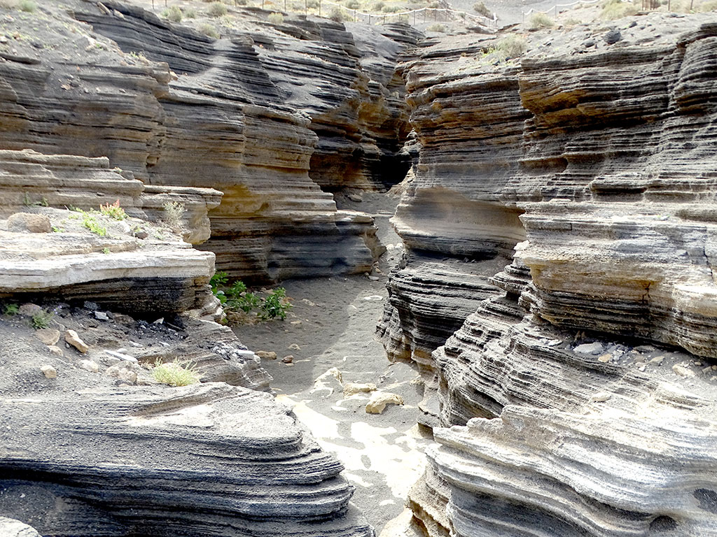 En quittant Puerto Del Carmen, nous avons fait une dernière escale près de Tias, découvrir une curiosité devenue connue par internet : Las Grietas. Des petits canyons creusés dans la roche volcanique où le temps a créé des effets stratifiés très photogéniques.